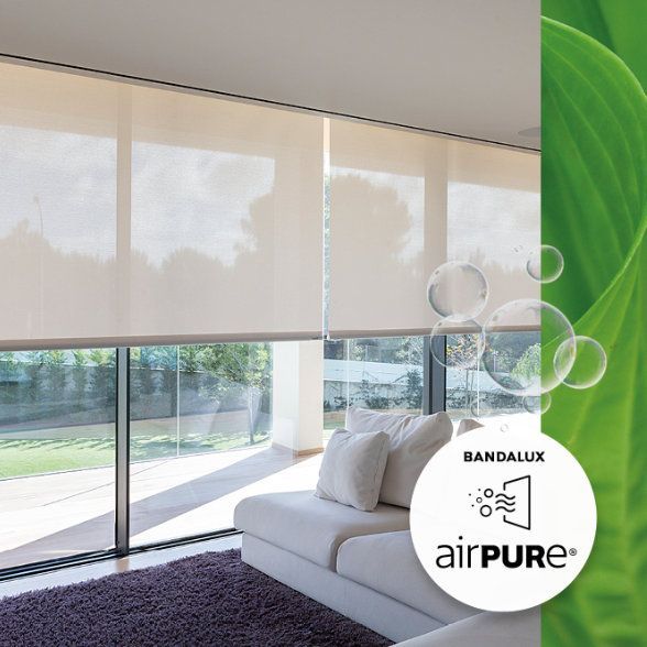 Airpure® è applicabile all'intera gamma di tende a rullo con e senza cassonetto, Fit Box e Lucernario Nova. Queste tende possono essere installate in qualsiasi tipo di spazio, sia all'interno che all'esterno, con i tessuti Polyscreen® 550 Airpure® e Mega BO Airpure®.